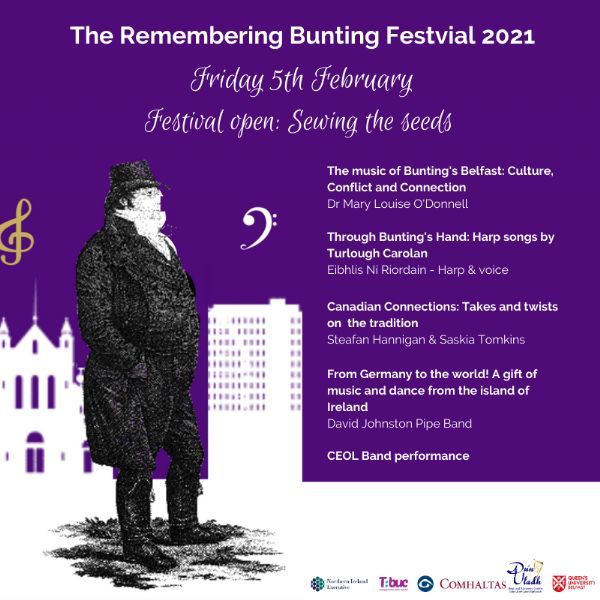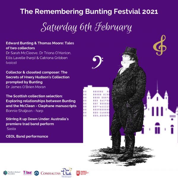 Every year, the annual Remembering Bunting Festival is hosted, which is a festival centred around harpist Edward Bunting. Usually, our festival is held over the course of around 4 days in Belfast, but this year given COVID-19 circumstances we are delighted to be hosting it online through a series of events, musical performances and academic talks which means the festival can come to you this year with not only local artists and speakers from across the globe also!