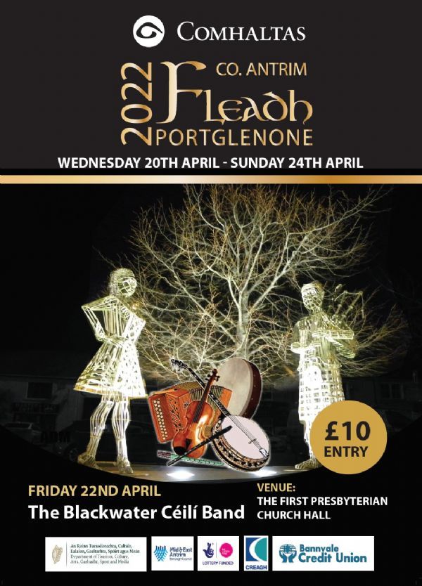 And so, Ulster’s first Fleadh in 2022 will be hosted by the Portglenone CCE Branch in County Antrim from 20th – 24th April, after a break of over 30 months due the onset of the Covid-19 Pandemic which hit our shores in March 2020.