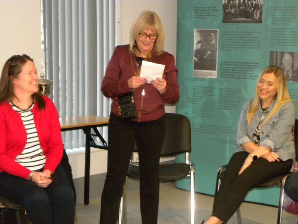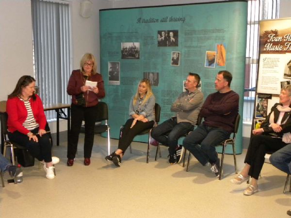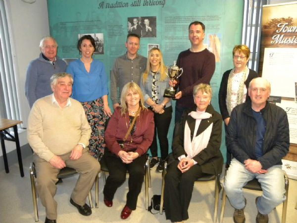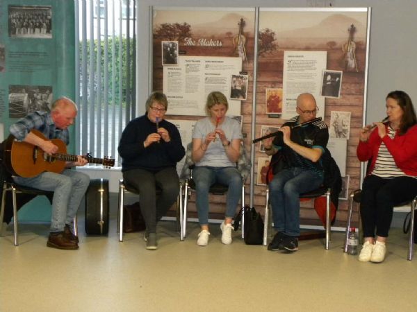 Past Pupils of John Kennedy, Grainne McGrath, Sheena (Weir) Black, Brian McCart and Mairead Walls play a selection of Johns Compositions and John Kennedy's Family present two trophies in his name to Portglenone CCE and Antrim Comhaltas.