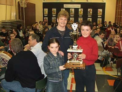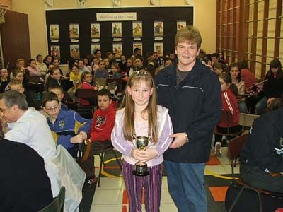 The trophies were presented by past Portglenone CCE Tin Whistle and Flute tutor, Maureen Quinn (nee Mc Crystal), at the last branch class before Easter. Instead of the normal class, the evening took the shape of a concert in the hall of St Mary's Primary School, with each tutor and their students playing a few selected tunes which they have learned over the past year.
