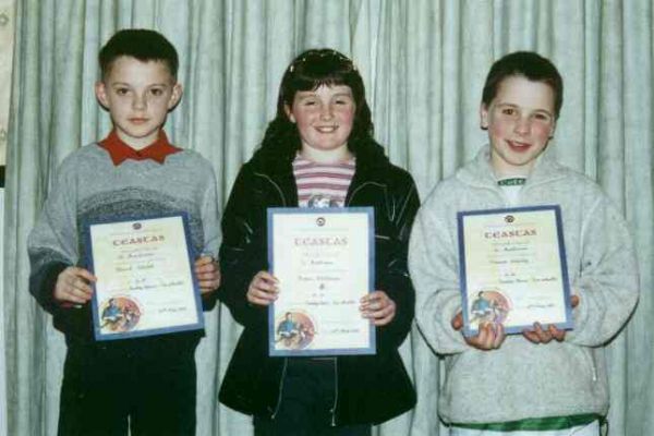There were also a few other presentations to the junior wing of the branch. The photograph shows some of the very young musicians who obtained recognition for their participation at the County Fleadh back in May 2000. These young pupils of Portglenone CCE were given the certificate to reward them for competing at such a high level and to encourage them to continue to practice and learn their instruments well.