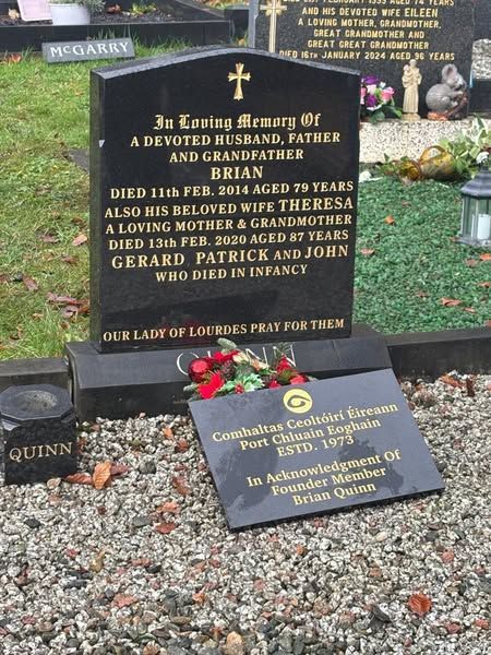 On Sunday 29th December, we had the great honour of presenting the Quinn family with a memorial plaque from Portglenone CCE in memory of Brian Quinn who was a founding member of our branch 50 years ago.