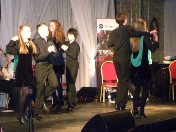 During the first half of the concert, Bean a Tí for the evening, Maire Darragh, and Branch Chairman, Eamon Graham, presented local musician, Robert Close, with his ‘Gradam’ Award for services to Traditional music. Portglenone Comhaltas Branch members, Geraldine Donnelly and Tony Convery, were also presented with their ‘Gradam’ Awards for Services to Portglenone CCE over the past 30 years.