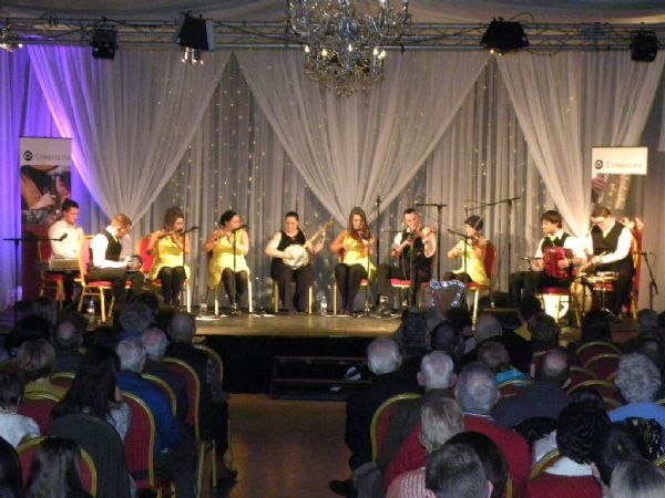 2014 All Ireland Céilí Band Champions, Knockmore Céilí Band, were the star attraction at a Concert in The Riverside Suite at The Wild Duck Inn in Portglenone on Friday night. Hosted by the local Portglenone Comhaltas Branch and supported by local acts, Portglenone CCE Junior Traditional musicians and Glenullen Scor Na nOg Set Dance group, the concert was a resounding success.