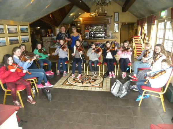 On Saturday well-attended workshops were held with members from the local Comhaltas groups from Portglenone and beyond taking part in a range of instrumental workshops led by the Knockmore Céilí Band members.