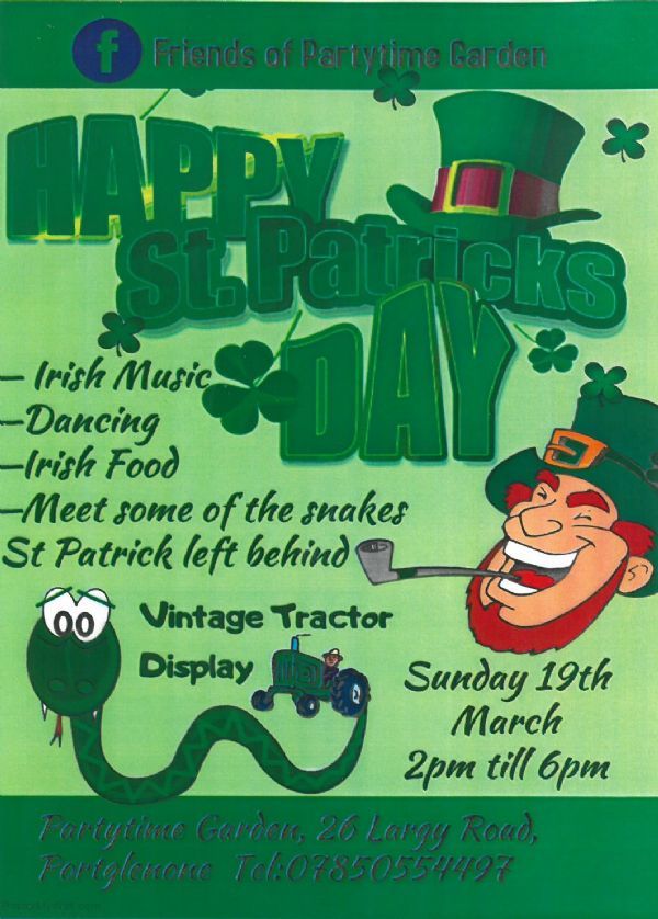 Happy St. Patrick Day Celebrations wild be held at Partytime Garden on Sunday 19th March from 2pm till 6pm.