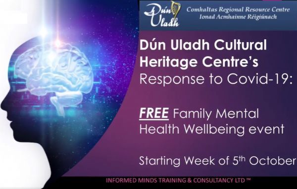 This is your final call to sign up to the fantastic Informed Minds Training & Consultancy & Dún Uladh Cultural Heritage Centre mental wellbeing course which commences the week of 5th October 2020.
