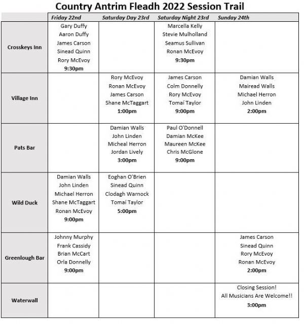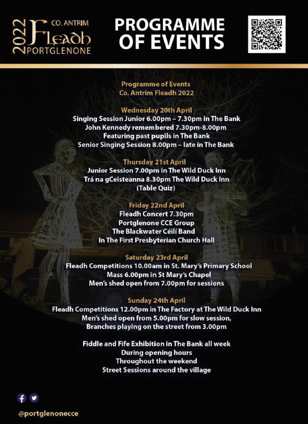 And so, Ulster’s first Fleadh in 2022 will be hosted by the Portglenone CCE Branch in County Antrim from 20th – 24th April, after a break of over 30 months due the onset of the Covid-19 Pandemic which hit our shores in March 2020.
