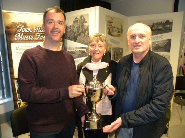 Past Pupils of John Kennedy, Grainne McGrath, Sheena (Weir) Black, Brian McCart and Mairead Walls play a selection of Johns Compositions and John Kennedy's Family present two trophies in his name to Portglenone CCE and Antrim Comhaltas.