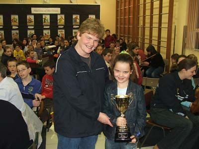 The trophies were presented by past Portglenone CCE Tin Whistle and Flute tutor, Maureen Quinn (nee Mc Crystal), at the last branch class before Easter. Instead of the normal class, the evening took the shape of a concert in the hall of St Mary's Primary School, with each tutor and their students playing a few selected tunes which they have learned over the past year.