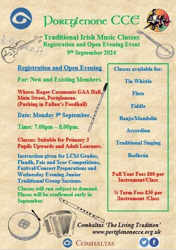 Portglenone CCE Registration and Classes for the incoming 2024-2025 Term: