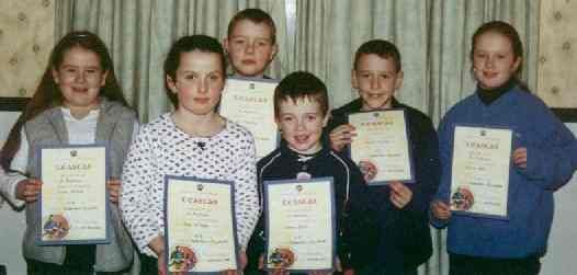 There were also a few other presentations to the junior wing of the branch. The photograph shows some of the very young musicians who obtained recognition for their participation at the County Fleadh back in May 2000. These young pupils of Portglenone CCE were given the certificate to reward them for competing at such a high level and to encourage them to continue to practice and learn their instruments well.