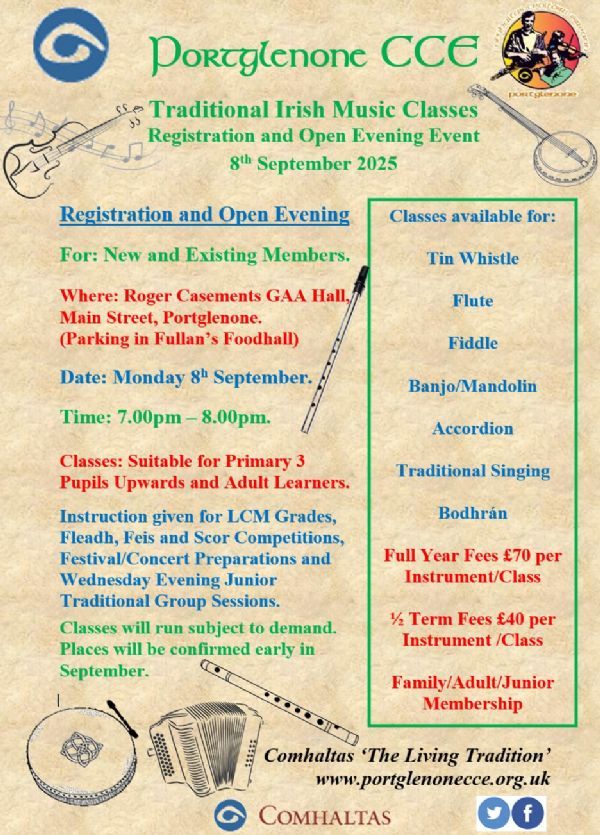 Portglenone CCE Registration and Classes for the incoming 2025-2026 Term: