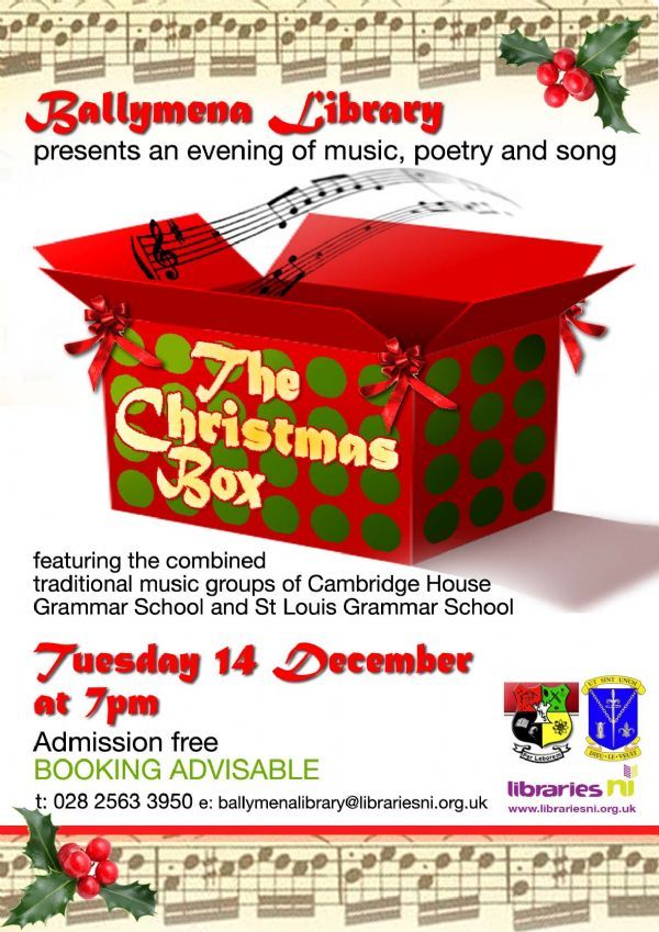Ballymena Library presents an evening of music, poetry and song featuring the combined traditional music groups of Cambridge House Grammar and St. Louis Grammar School.